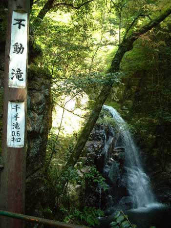 不動滝。こんな大小の滝が行く先々にあります。日差しの良い日に水辺はほんとうに気持ちいい。