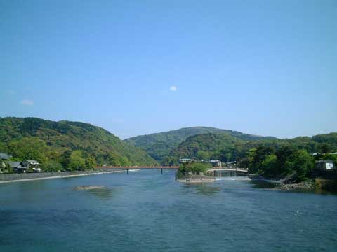 脇を流れる宇治川と山峰。良いお天気の日でした。