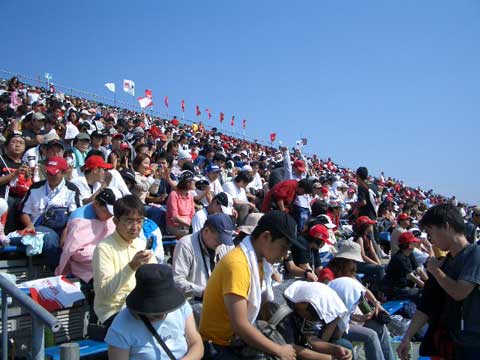 スタンド風景。レース開始前から熱気熱気! しかし10月とは思えぬ日差しでした。