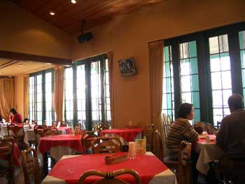 雰囲気の良い店内。しかしここでも壁のプロジェクターにはF1レースの映像が流れています。肝心の料理メニューもコース、セットなど充実。
