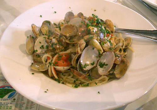 さくらぐみ初心者にお勧めのボンゴレソッロです。 アルデンテに茹で上がった太目のパスタがどさっと入ったアサリとともに盛り付けられています。 食べ終わった後はアサリの殻だけでお皿がいっぱいに。 |