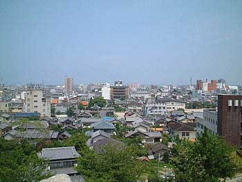 松阪上からの眺めです。中央に移っているホテルのような建物が和田金です。